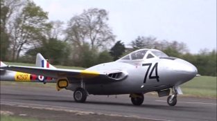 Авион Хавилланд Вампир ВЗ507, један од првих млазних авиона направљених 1944. године, поцепао асфалт као офф у Халфпенни Зелени коридор у Великој Британији.