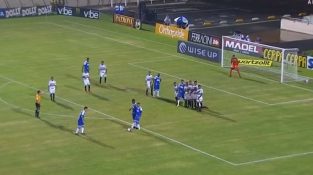 У фудбалској утакмици између Сао Бенто и Сао Паолу у Бразилу, играчи Сао Бенто до веома паметан слободан ударац да збуни противников одбрану.