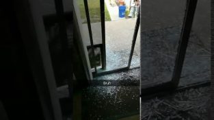 Претерано узбуђен пас није видела стакла врата и ушао унутра док је трчала у башти. Власник објашњава да је пас није био повређен.