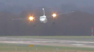 Пилот успева да слети његов авион (Бомбардиер цртица 8) у Дизелдорфу аеродрому у Немачкој, са ветровима од 110 км / х.