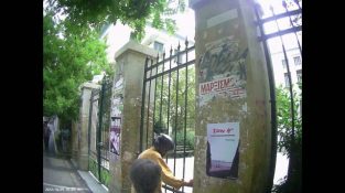 Овај мали пас не жели да се одвоји од свог доброг пријатеља, и стално је стопало не одступи.