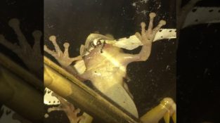 Током летње ноћи у Флорида САД, лептир ноћи успева да побегне из чељусти жабе која је скоро захваћених.
