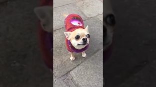 Цхихуахуа пас покушава да вришти слушајући звоно, али изгледа да не верују.