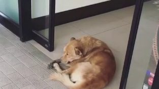 Бангкок Тајланд, пас седи мирно у тренутку који затвара аутоматски клизна врата.