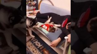 Хаскија пас жели да спава на каучу поред његовог шефа, али место је штене. Али пас не оклева да повуче штене са кауча и баци га [...]