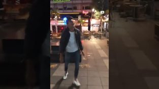 Пијан човек у Амстердаму покушава да подстакне голуба, али би ставили и пасти на земљу.