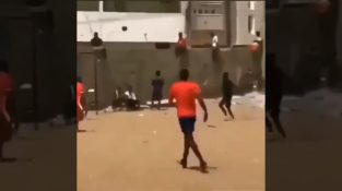 Током аматерски фудбалске утакмице у Африци, лопта ће ударити вентилатор након једним ударцем.