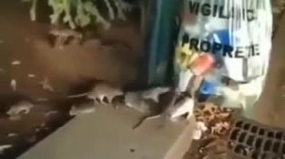 Стадо мајмуна покушава да уграби што више кришки хлеба, кроз контејнер.