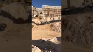 У каменолому, багер спречава несрећу помоћу своје канте. Багериста је брзо реаговао када је видео да камион вуче велики терет.