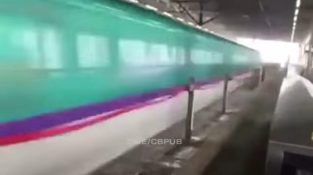 Шинкансенов воз у Јапану, пролази кроз тунел брзином од преко 300 км/х.