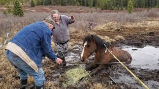 У Алберти у Канади, Помозите друштву Алберта Вилдиес да спаси дивљег коња који је потонуо у блатњавој мочвари.