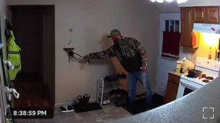 Човек покушава да обеси кључеве на зидни привезак кључева своје куће.