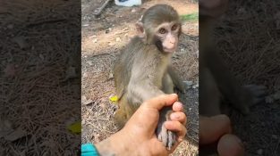 Мајмун споро схвата да ју је човек ухватио за руку. Кад то види, потребно је време да се схвати шта се догодило.