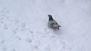 U vrtu u Ankari, Turska, neko snimi neke golubove u spotu. Jedan od njih počinje poletanje, lepo roni i pada glavom u snegu.
