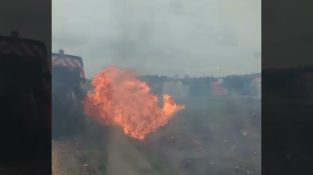 Полицајац снима видео из полицијског комбија у Саинте-Солинеу у Француској, током протеста 25. марта. Киша од камења, петарде и молотовљеви коктели погодили су полицијска возила.