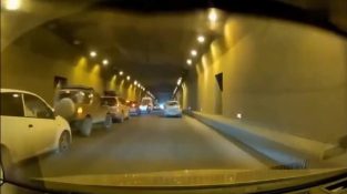 Возач у Владивостоку у Русији буљи у екран свог мобилног док вози, и судара се са аутомобилом испред себе. Возачево седиште је десно.