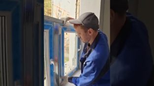 Радник покушава да инсталира два прозора, један поред другог. Смешна скица Азуре Драгонса.