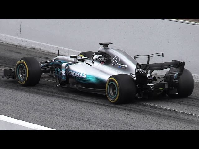Under testet för den nya säsongen i Katalonien, nya bilar Formel 1 kommer ut ur depån och påskynda.