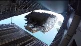 En video skjuten av en passagerare i en förbipasserande bil visar hundratals människor på scenen, med många stående på sidan av det fällda lastbilen.