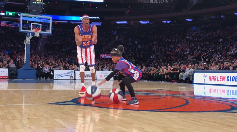 Samaya Clark-Gabriel, en flicka 8 år, Han gjorde en imponerande bollen hantering displayen när kallats till domstol Madison Square Garden av Harlem Globetrotters.