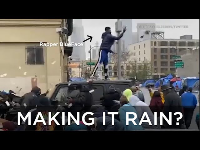 Rapparen 'Blueface' kastar pengar till hemlösa