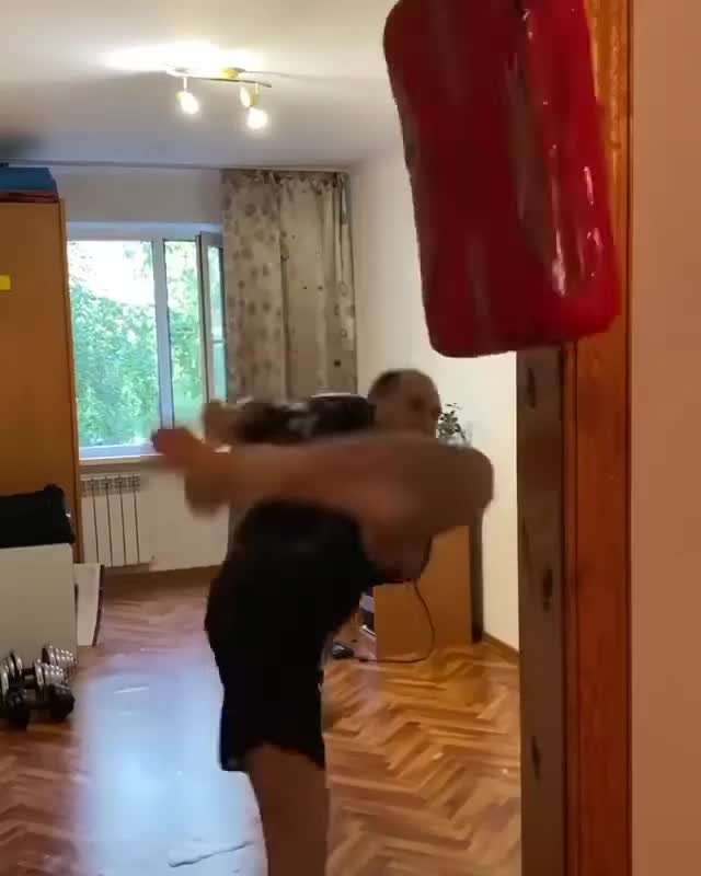 En kattunge försöker lämna huset, men mamma kommer omedelbart att fånga den från att falla.