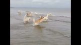 Försöker ha lite kul i snön, Denna hund egendomsrätt och hans Tax valpar spela hockey!