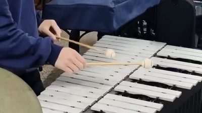 Med en xylofon och en trumma, Två musiker efterliknar perfekt mikrofonmeddelandena på en flygplats.