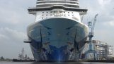 , den avgår för första gången från Meyer Werft-varven i Papenburg, Tyskland....