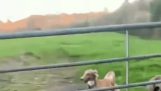 En hund räddar hans kompis i ett vattenfall