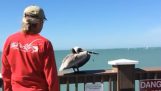 En man ville dra en selfie med en pelikan, Så han närmade sig honom med sin mobiltelefon. Pelikan stod som en staty, Men plötsligt grep han mans huvud med näbben. En mycket speciell selfie.