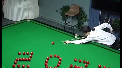 Den kinesiska poolspelaren Pan Xiaoting önskar alla ett gott nytt år 2026. Siffran 2025 är skrivet med bollar på biljardbordet. Hon slår en boll med sin klubba och placerar den på 5:an för att förvandla siffran till en 6:a.