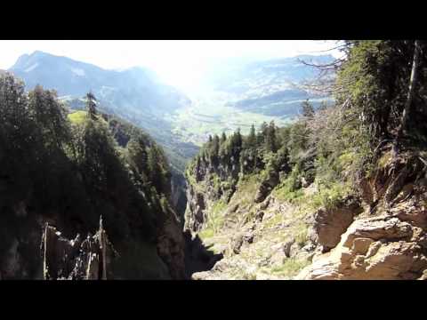 Den professionella fallskärmshoppare Jeb tycke Corliss faller från bergets topp Jungfrau i de schweiziska Alperna som bär en bevingad outfit (Wingsuit), utrustad med två kameror, GoPro HD