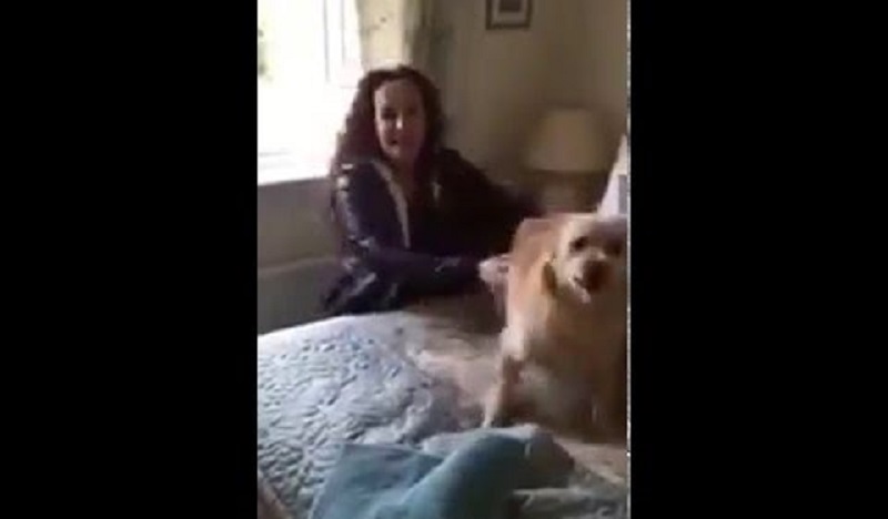 Ägaren saknades i 7 månader, och återvänder gömde hemma. Hunden sniffade och började titta på alla rum att hitta. När den upptäcktes gömma sig bakom sängen, Han var alltför upphetsad.
