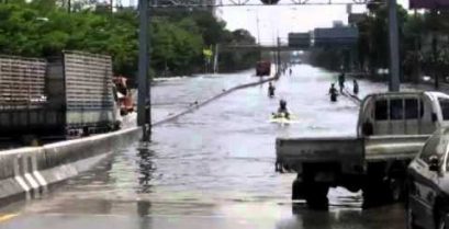 Motorcykel tur i de översvämmade gatorna i Thailand