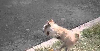 Denna hund i Hawaii har fötts med bara två ben. Så hon går permanent med detta söta sätt.