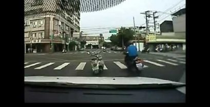 En mamma i Taiwan går ner tillsammans med sitt barn från en skoter och hjälper en äldre att korsa vägen.