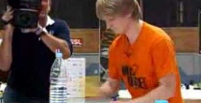 Thomas Fischbach veckla upp sina talanger, i en ursprungliga tärningarna stapling tävling i Tyskland.