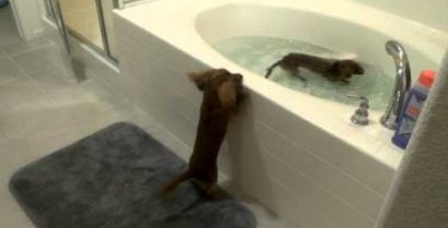 Två hundar som älskar badet