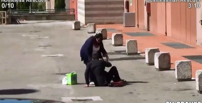 En uteliggare och en affärsman som vandrar i gatan. Plötsligt snubblar och faller. Vem hjälper förbipasserande; [...]