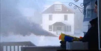En vattenpistol sprutar ut vatten vid -40 grader Celsius, på Porcupine, Kanada.