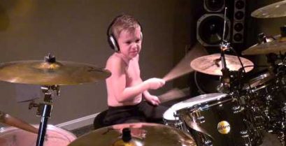 De enda 6 år Avery Molek spelar trummor i låten 'Welcome To The Jungle' av Guns N Roses.