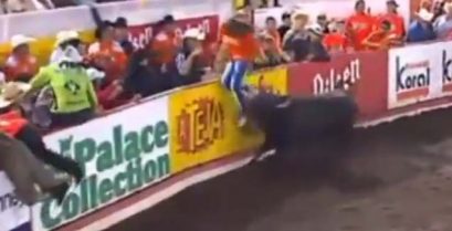 En tjur lyfter upp en kvinna i luften och sätter henne... på hennes plats.