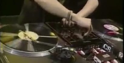 Den japanska Kentaro Okamoto aka DJ Kentaro, gör 'magi' på skivspelare vid 2001 års DMC-VM. Observera att skapar ljud genom att placera nålen på skivbolagen.