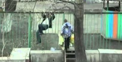 En berusad man i Ryssland försöker på alla sätt att passera över ett staket utan resultat. Sedan kommer att ett litet barn Visa honom den lätt väg.