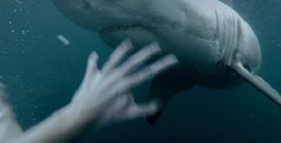 En man som gör ett plask i Sydney Harbour i Australien, konfronteras med en vithaj. Mobbad och försöker komma direkt från vattnet, Medan hajen verkade mer nyfiken än aggressiva.