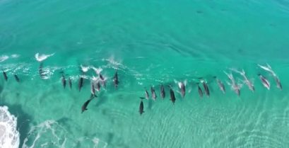 I sydvästra Australien försökte utredaren Dave Rigks ta bilder av vithajar, När han märkte en flock delfiner att 'surfa' och spela i väntan på vågorna.