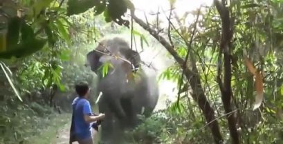 Hur man ska klara när din offensiv kommer på en elefant; Denna turist i Thailand gjort förmodligen rätt väg att gå.