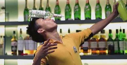 Den taiwanesiska-född Roh Isu Mimmis, en av de bästa bartenders/jonglör i världen, berömda gul form av Bruce Lee, och visar oss hans talang bakom baren.