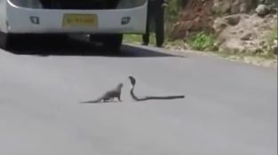 En Mungo jagar en farlig Cobra och lyckas döda henne, mitt på en väg i Indien. De indiska grå Manguster är kända för sin förmåga att slåss och döda giftormar, och [...]